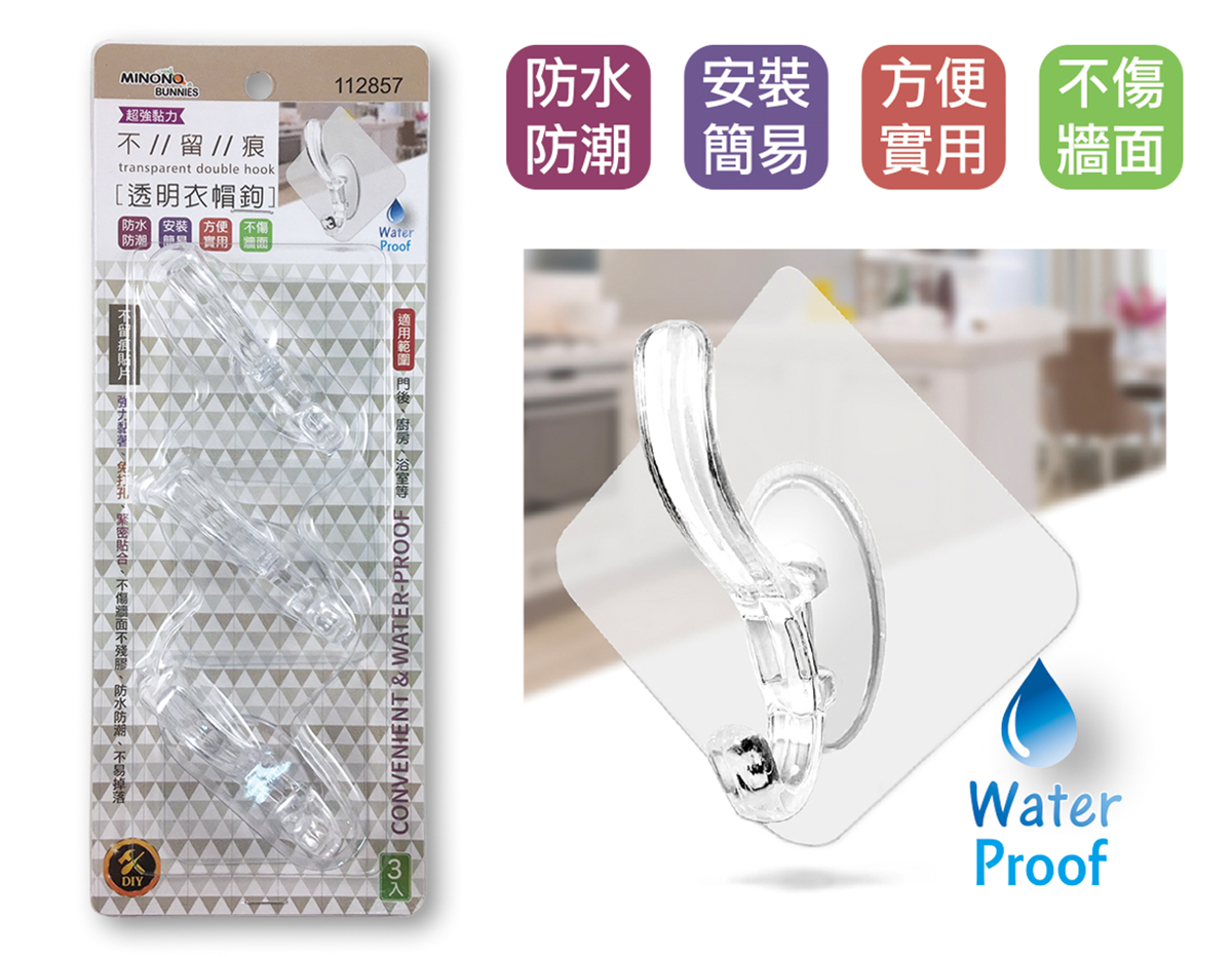 品名: 米諾諾不留痕透明衣帽鉤3入