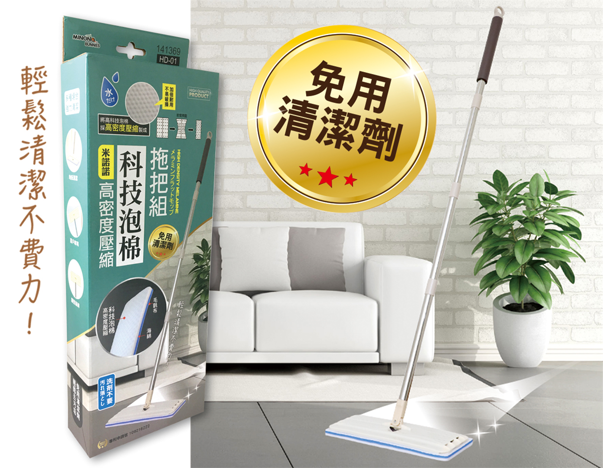 品名: 米諾諾HD-01高密度壓縮科技泡棉拖把組