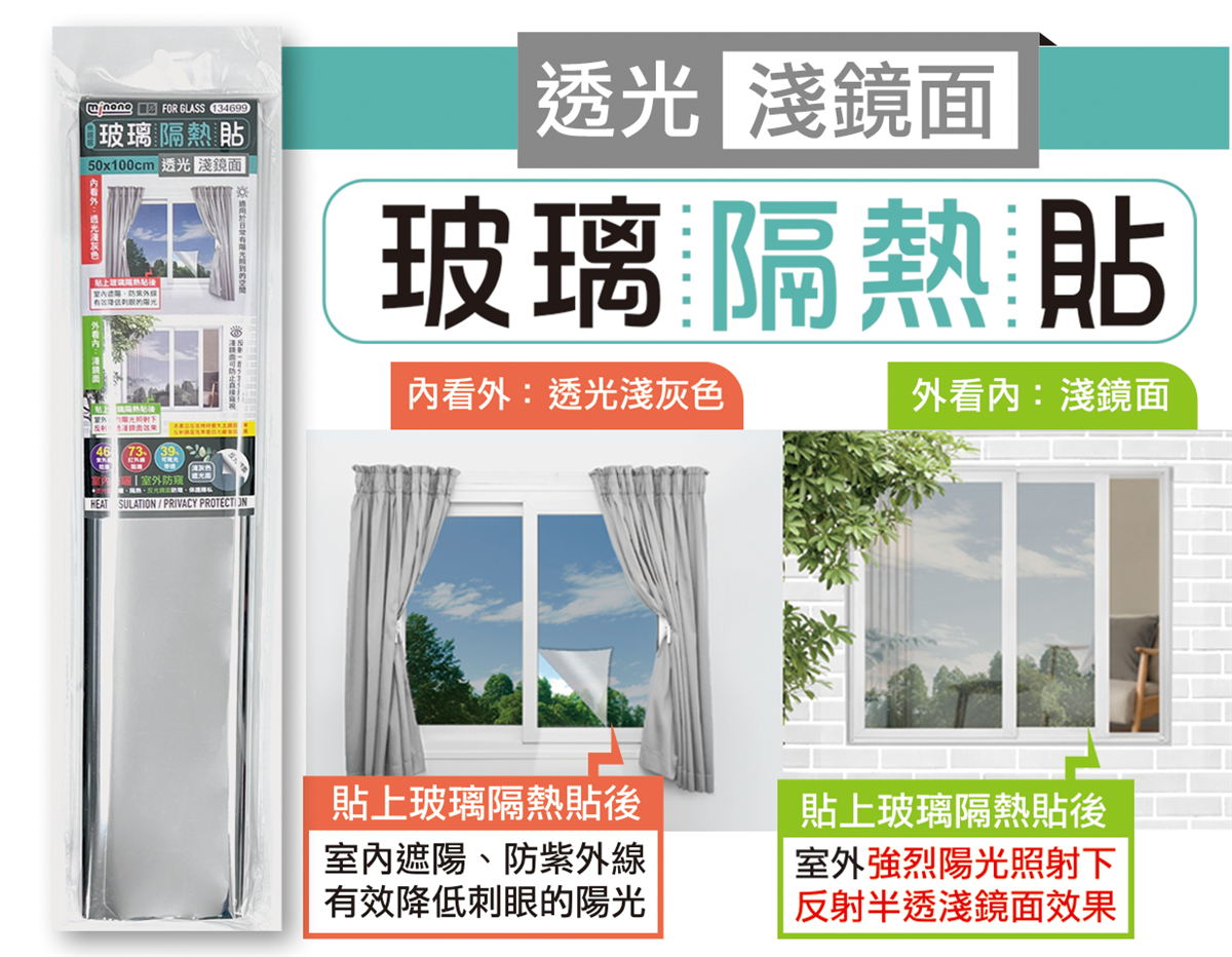 品名: 米諾諾玻璃隔熱貼50x100cm透光淺鏡面